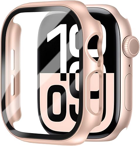 2 Pack Tempered Glass Case Compatible for Apple Watch Series 10 46mm, Hard PC Screen Protector Overall Cover for iWatch, Satin Black (42mm for Series 10, Starry and transparent)