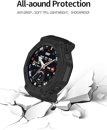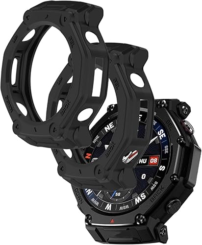 [2 Pack] Case for Amazfit T-REX3 Pro Smartwatch,a Hollow-Out Design,Shockproof,BOVUGAC Semi-Around TPU Protective Case Cover for Amazfit T-REX3 Pro Accessories-Black