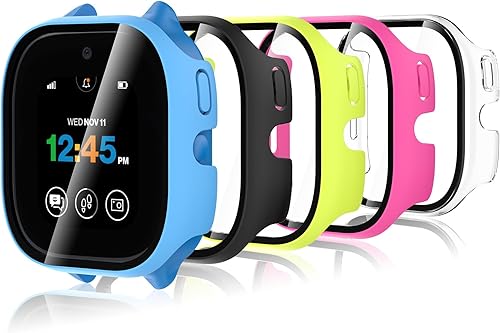 5-Pack Screen Protective Case Compatible with Verizon Gizmo Watch 3, Tempered Glass Cover Compatible with Verizon Gizmo Watch 3, PC Frame HD Full-Coverage Case, Clear/Black/Rose Red/Blue/Green