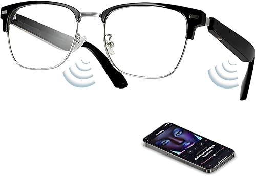AI Smart Glasses with Real Time Translation, Bluetooth Bone Conduction Open Ear Audio, UV Color Change Lens for Travel & Business Meetings (Blue)