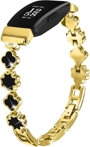 RuenTech Metal Watch Band Compatible with Fitbit Inspire 2/Inspire HR/Inspire/Ace 3/Ace 2 Watch, Lucky Clover Metal Stainless Steel Bracelet Wristband