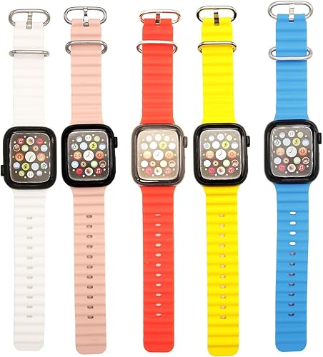 Soft Silicone Watch Band for Apple Watch 38mm ,40mm,41mm,42mm, Ocean Style, 5-Pack,iWatch Ultra 2 Ultra SE Series 10.9.8.7.6.5.4.3