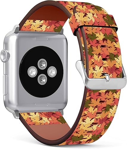 Mingdao Compatible with Apple Watch Series 11 10 9 8 7 6 5 4 3 2 1 SE Uitra 1/2/3, Stylish PU Leather Band Replacement Strap, Golden Autumn MP6588