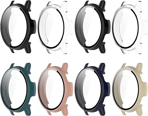 8 Pack Case for Garmin Vivoactive 6 Screen Protector, Hard PC Bumper Overall Protective Tempered Glass Cover Accessories for Garmin Vivoactive 6 SmartWatch