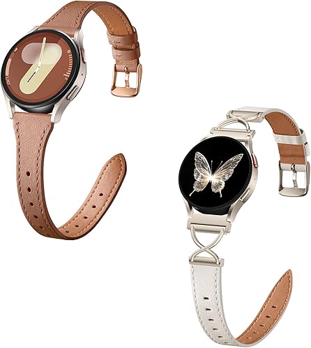 GEAK Slim Leather Band Compatible with Galaxy Watch 7 Band/6 5 4 FE 40mm 44mm/5 pro 45mm/Classic, 20mm Genuine Leather Strap with Quick Release Buckle for Samsung Watch Bands Women