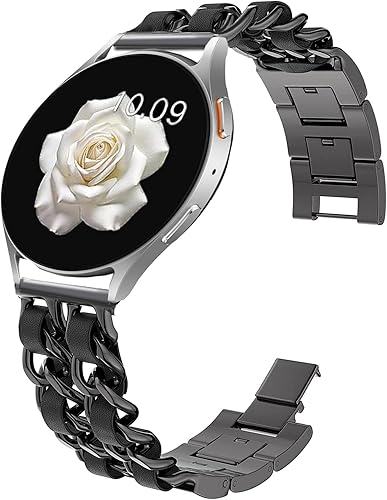 Compatible with Galaxy Watch 8 Band, Lamshaw Jewelry Chain Metal Wristband with Leather Compatible with Galaxy Watch 8 40mm, 44mm, 46mm classic/7/6/5/4 44mm 40mm/FE 40mm/6 Classic 47mm 43mm/5 Pro/4 Classic/3 41mm