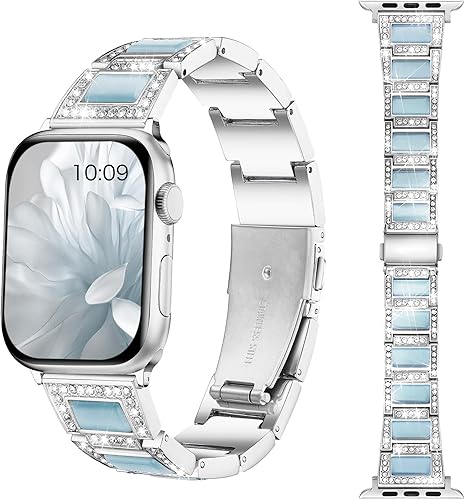 Dressy Silver iWatch Bands for Women - Compatible with Apple Watch Series 10-1/SE/Ultra, Fits 38mm 40mm 41mm 42mm 44mm 46mm - Luxury Designer Bracelet, Bling Jewelry Strap