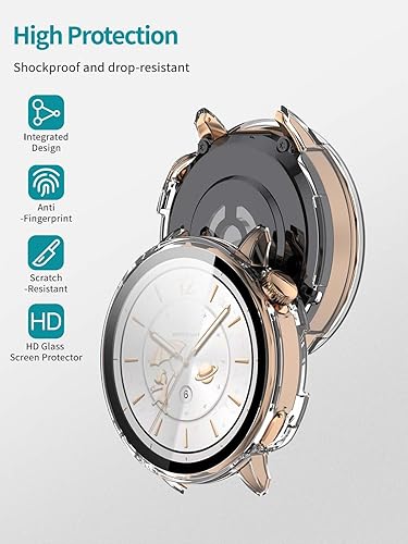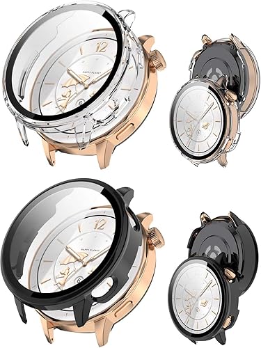 2pack Case for OnePlus Watch 3 43mm, Protective Cover Smart Watch,Built-in 9H Tempered Glass Film, Hard PC,Easy to Install,Screen Protector for OnePlus Watch 3 Smart Watch 43mm(Black+Clear)