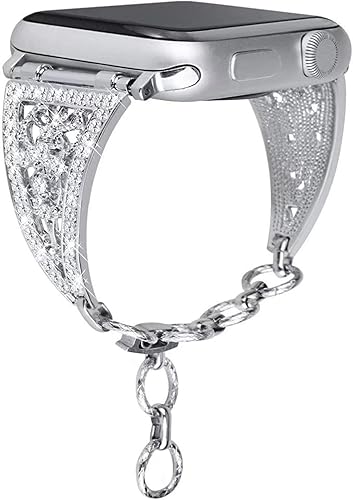 for Apple Watch Band Series 7 6 SE 5 4 3 Metal Strap 40mm 44mm 38mm 42mmLuxury Bling Diamond Women Bracelet (Color : Rose Gold, Size : 44mm)