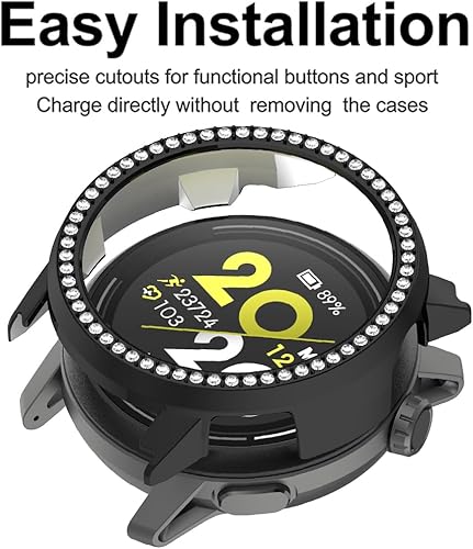 [2 Piece] Glitter Diamond Case for coros pace pro, Hard PC Bumper Case with Bling Protective Case Cover Smartwatch Accessories for Women Girls,Black+Black