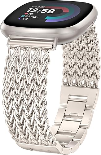 Minyee 2 Packs Compatible with Fitbit Sense 2/Versa 4/Versa 3/Sense Bands Women, Dressy Stainless Steel Multi-chain Luxury Link Bracelet & Chic Honeycomb Chain Designer Luxury Chic Link Bracelet