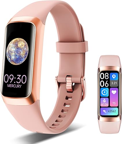 Fitness Tracker, 24/7 Heart Rate Blood Oxygen Blood Pressure Body Temp Monitor Sleep Calorie Tracker with 1.1" AMOLED Touch Color Screen Pedometer Smart Watch Waterproof for Women Men (Purple)