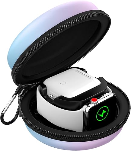 Storage Box Compatible Apple Watch Series 11/10/9/8/7/6/5/4/3/2/1/SE3/SE2/SE,Portable Travel Case fit iWatch 46mm 45mm 44mm 42mm 41mm 40mm 38mm AirPods Pro/3/2/1 Charging Dock,GrditBluePurple