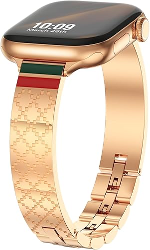 WINGLE Slim Band for Apple Watch Band Women 38mm 40mm 41mm 42mm 44mm 45mm 46mm 49mm Series 11 10 SE 3/2/1 Thin Stainless Steel Metal Strap Dressy Jewelry Designer Luxury Bracelet iWatch 9 8 7 6 5 4 3
