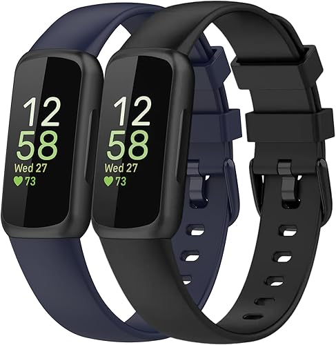 2 Pack Compatible with Fitbit Inspire 3 Bands, 15.4mm Width Soft Silicone Adjustable Sport Replacement Band for Women Men