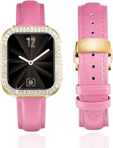 BINLUN Leather Band Compatible with Apple Watch 46mm 45mm 44mm 42mm 41mm 40mm Women Leather Strap with Glitter Diamond Case Compatible with iWatch Series 11/10/9/8/7/SE3/SE2/SE/6/5/4