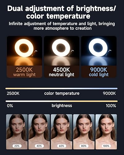 Magnetic Selfie Light, Phone Light Compatible with iPhone, CRI95 Folding 360° LED Selfie Ring Fill Lighting with Mirror for Selfies, Photography, Vlog, Makeup, Video Conferences, Black