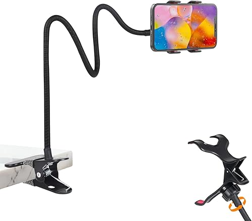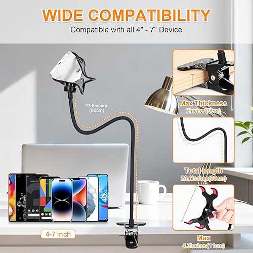 Gooseneck Phone Holder for Desk,Clip On Phone Holder for Bed,Flexible Long Arm Lazy Bracket,Cell Phone Stand Mount with Clamp for iPhone 16 Pro Max 15 14 13 X SE Series,for All 4"-7" Cellphone