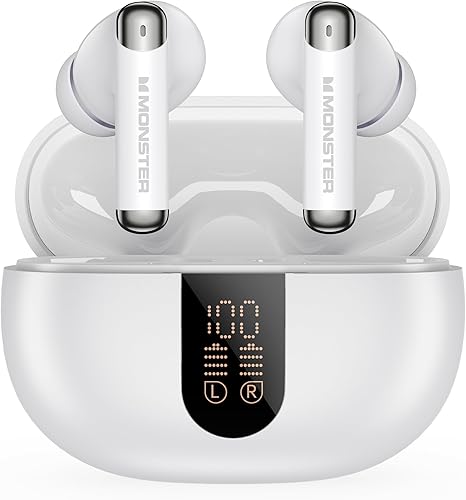 Monster N-Lite 211 Wireless Earbuds, Bluetooth 6.0 Stereo Headphones with Powerful Bass, Built-in Noise-Cancelling Mic for Clear Calls, LED Display, 36H Playtime, IPX5 Waterproof Design for Sports