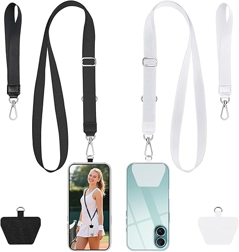 takyu Phone Lanyard, 2 Pack Crossbody Anti-Drop Neck and Wrist Strap with 2 Pcs Tether Patches, Secure Hands-Free Compatible for iPhone Samsung Perfect for Nurses, Teachers, Travel, Hiking Black+Gray