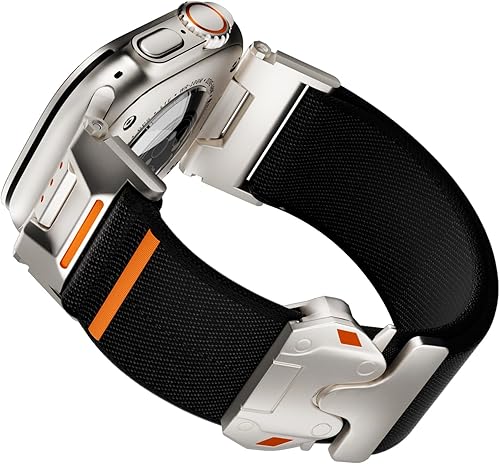 Men Fabric Nylon Stretchy Band for Apple Watch Ultra 3/2 Bands, 49mm 46mm 45mm 44mm 42mm 41mm 40mm 38mm, Mecha-Style Parachute Buckle Wide Strap Wristband, Black