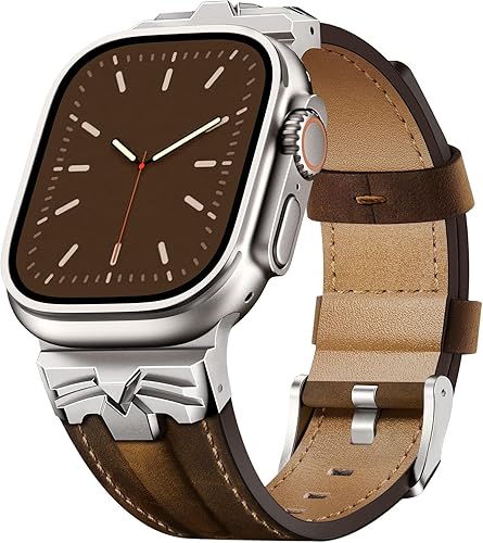 DABAOZA Compatible for Apple Watch Ultra 3 Band 49mm 46mm 45mm 44mm for Men Women, Genuine Leather Rugged Matel Connector Replacement Strap for iWatch Ultra 2 1 SE Series 11 10 9 8 7 6 5 4