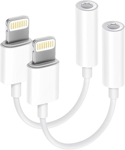 Apple MFi Certified 2 Pack Lightning to 3.5 mm Headphone Jack Adapter for iPhone, iPhone Aux Adapter Converter Dongle Audio Cable Compatible with iPhone 14 13 12 11 X XS 8 7 White