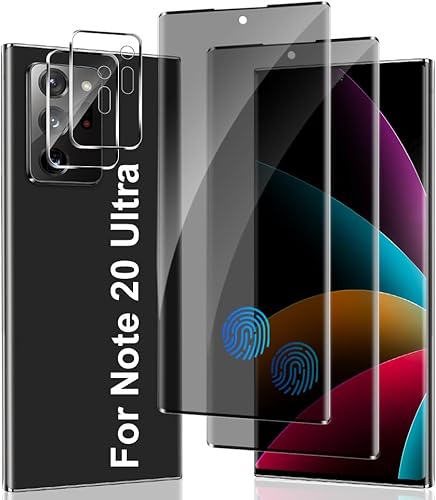 [2+2 Packs] Galaxy Note 10 Plus Privacy Screen Protector and Camera Lens Protector, Fingerprint Unlock, 9H Hardness anti-spy Tempered Glass, No Bubble, Easy Installation, Anti Scratch 6.8 Inch