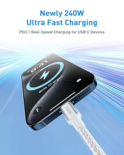 240W USB C to USB C Cable 8ft, Long USB C to C Cable Fast Charging, USBC Charger Cord for iPhone 17 Air 16 15 Pro Max Plus 16e, for MacBook Pro and More