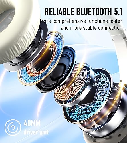 Wireless Bluetooth Headphones Over-Ear, 70H Playtime Foldable Lightweight and Stereo Deep Bass Headphones Wireless Bluetooth HiFi Stereo Sound with 3 EQ Modes