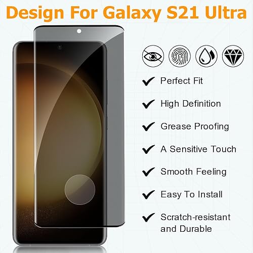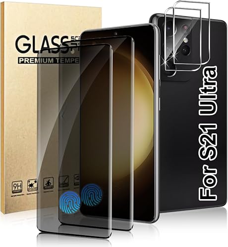 2 Pack Galaxy S21 Ultra Privacy Screen Protector+2 Pack Camera Lens Protector, Fingerprint support,9H Hardness Tempered Glass,Scratch Resistant,for S21 Ultra Anti Spy Glass Screen Protector 6.8 Inch