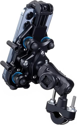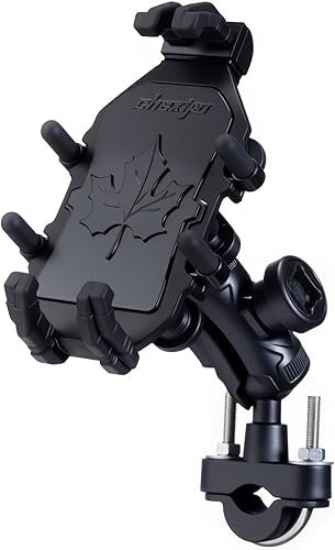 Universal Motorcycle Phone Mount Holder Anti-Shake Anti-Theft Design with Vibration Dampener Handlebar Smartphone Cradle for Bike ATV Scooter 5.4-6.9” Fit