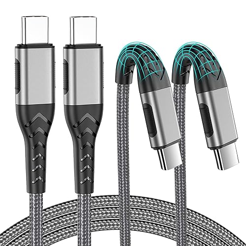 2-Pack 10FT 100W USB C to USB C Cable, Extra Long Fast Charging Cord for Phone 17/17 Pro/16/16 Pro Max/15/15 Pro Max, Gray Braided Type C Charger with Anti-Slip Terminal & SR Strain Relief