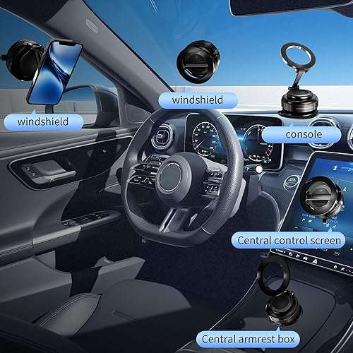 Wigoo Vacuum Magnetic Phone Holder for Car for Magsafe [80LBS Suction & 3000gf Magnetic] 360° Adjustable Car Phone Mount, Cell Phone Holders for Your Car, for iPhone 17 Pro Max 16 15 14 13 12 Air Plus