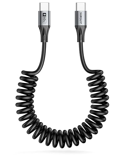 SUNGUY Coiled USB C to USB C Cable, 60W [1FT-3FT] USBC to USBC Android Auto & Carplay Cable for iPhone 17 16 15 Pro Max, Samsung Galaxy S24/S3/S22, iPad Pro