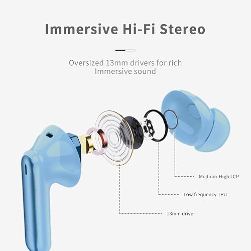 Wireless Headphones,Bluetooth 5.4 Headphones Noise Cancelling,IPX7 Waterproof,with Charging Case Included, Over 35H Playtime in-Ear Hi-Fi Stereo,Touch Control (Blue)