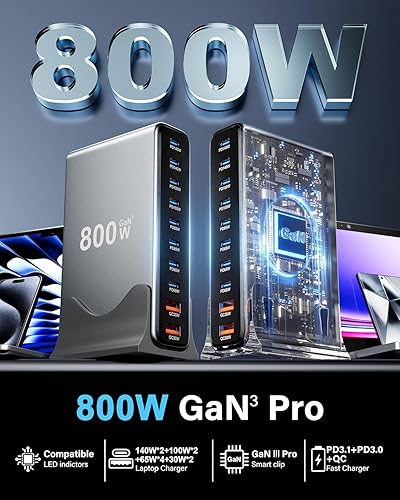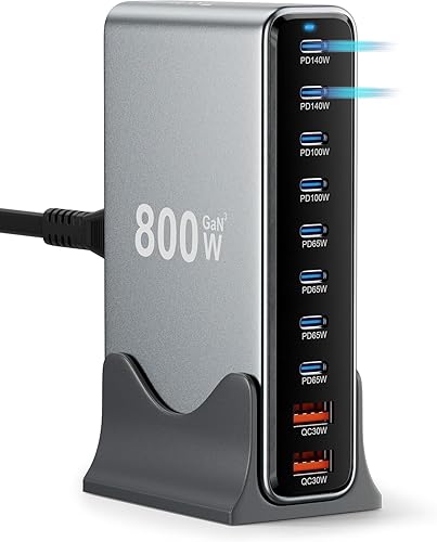 800W USB C Fast Charger Block, 10 Port USB Charging Station,GaNⅢ Desktop Charger Block, Charging Station Hub,PD 3.1/QC 5.0,for All iPad iPhone 17/16Pro Max/DELL HP MacBook pro, Samsung Galaxy Note