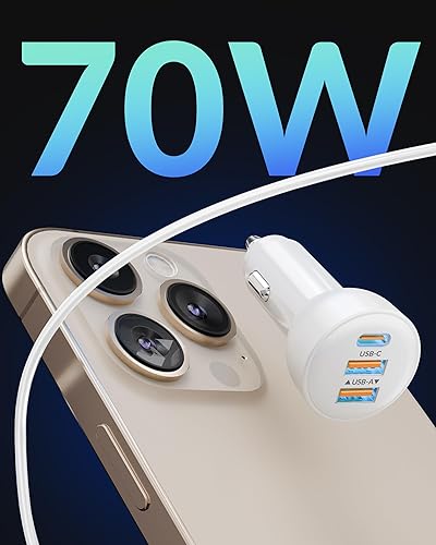 3-Port 70W Fast Car Charger for iPhone 14 13 12 11 Pro Max Plus Mini SE XR XS X 8 7 6, iPad, 2Pack USB Carplay Cord &Lightnings Charging Cable and USB-C&A Car Charger Adapter Cigarette Lighter
