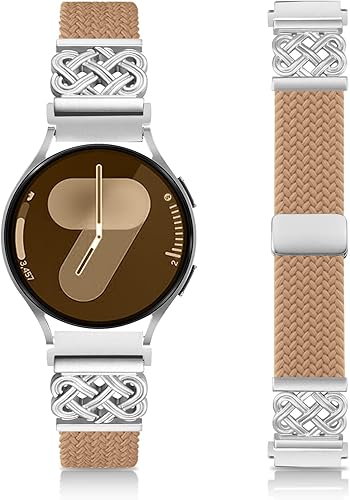 Braided Band Compatible with Samsung Galaxy Watch 7 6 5 4 FE Band 40mm 44mm/5 Pro/Watch 4&6 Classic/Active 2/Watch3 41mm, 20mm Soft Nylon Magnetic Stretch Strap with Designer Interlock Buckle