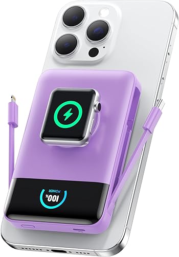 Magnetic Portable Charger for MagSafe with Built-in Cable, iWatch Charger,10800mAh Wireless Power Bank Travel Essentials,25W PD Fast Charging Battery Pack for iPhone 17/16/15/14/13 Series,Apple Watch