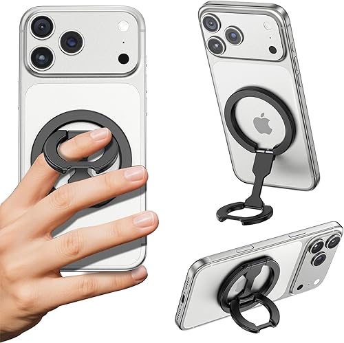 CloudValley for Magsafe Phone Grip Holder - Adjustable Dual-Sided Magnetic Finger Ring Stand 4-in-1, Compatible with iPhone 17/16-12 & MagSafe Car Mounts