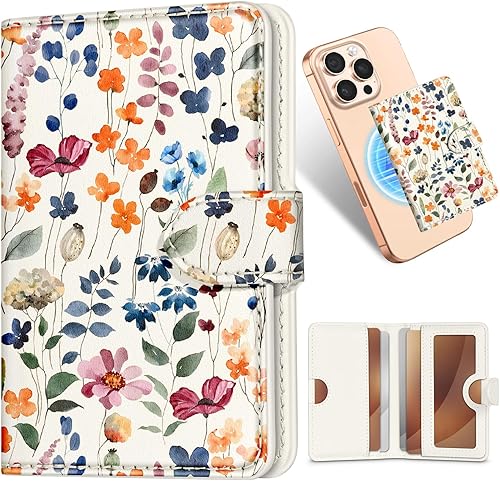 Shorogyt for Magnetic Phone Wallet Compatible with Magsafe Card Holder -Cute Luxury Slim Leather Mag Wallets for Women Fit 4 Cards,for iPhone 17/16/15/14/13/12 Series for Apple RFID Magnet, Watercolor