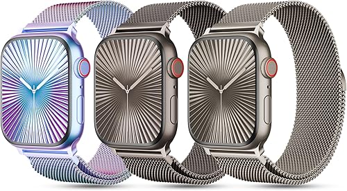 3 Pack Metal Mesh Loop Compatible with Apple Watch Band 38mm 40mm 41mm 42mm 44mm 45mm 46mm 49mm Women Men, Stainless Steel Magnetic Clasp Strap for iWatch Series 11 10 9 8 SE 7 6 5 4 3 2 1 Ultra