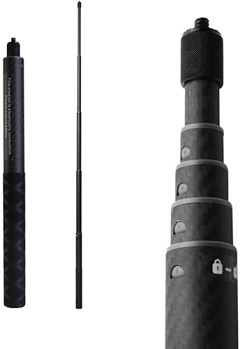 1.15m/45.3in Carbon Fiber Invisible Selfie Stick for Insta360 X5/X4/X3/ONE RS/ONE X, Internal Lock Telescopic Pole, Adjustable 1/4" Extended Monopod for GoPro & 360 Camera Accessories