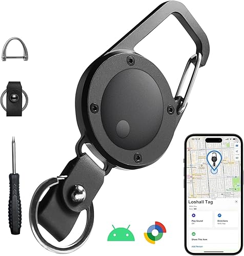 Keychain with Tracker for Android, Key Finder and Item Locator, Works with Google's Find My Device App, Heavy Duty Car Key Chain for Men (Black)