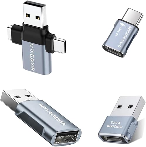 Data Blocker, USB A & USB C Data Blocker for iphone15 16 and Any USB C Mobile Phone Charge, Protect Against Juice Jacking, Refuse Hacking, Data Blocker Only Charging (Grey)