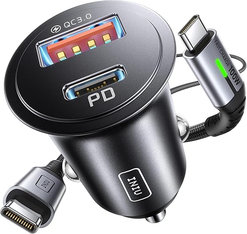 INIU Car Charger, Cigarette Lighter USB Charger Total 60W, 12V USB Socket with [1m] 100W Type C Cable Fast Charge, Car Phone Charge Adapter for iPhone 17 16 Samsung Laptops Switch 2 Car Accessories