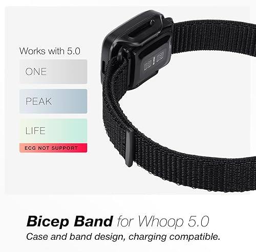 Sport Nylon Loop Compatible with Whoop 5.0 Bicep Band One, Peak, Adjustable Fitness Armband for Whoop Life(MG, ECG NOT Support) – Not Compatible with 4.0