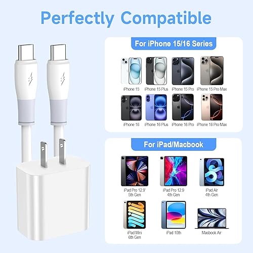 3ft For iPhone 17 16 15 Charger Fast Charging,20W For Apple iPad USB C Fast Charger,3ft USB C Wall Charger Block For iPhone / 16e/16 Pro/16 Pro Max/15/Plus/Pro Max/17/Pro/Pro Max/17 Air, iPad Pro/mini
