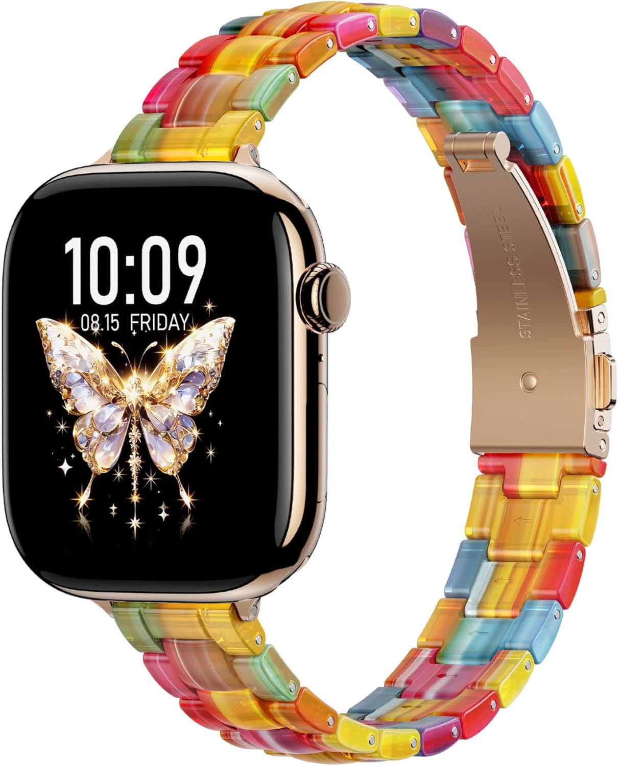 Slim Resin Band Compatible with Apple Watch Bands for Women 40mm 41mm 42mm 38mm,Thin Stylish Bracelet Fashion Lightweight Replacement Strap for iWatch Band Series 11/10/9/8/7/6/5/4/3/SE3 SE2 SE